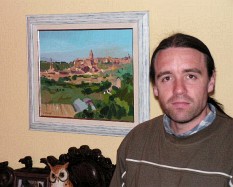 Francisco Javier Garrido Romanos, junto a la obra "Tardor". |