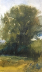 Gran chopo al atardecer. Acuarela sobre papel, 50 x 30 cm. Francisco Javier Garrido Romanos.