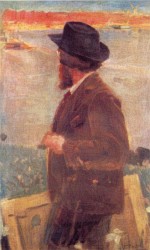 Rusiñol con un lienzo. Óleo sobre lienzo, 62 x 39 cm. Félix Mestres y Borrel