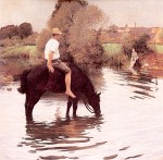 Young peasant taking his horse to the watering hole. Óleo sobre lienzo. Jules-Alexis Muenier.