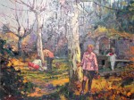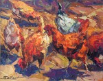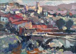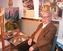 Con 16 años y sin finalizar todavía sus estudios artísticos es nombrado ayudante de la Escuela de Artes para descargar de trabajo a su propio profesor. Sallent alimenta su inquietud por la pintura rodeado de lienzos del propio Casas y también del amigo de este, Santiago Rusiñol, dentro del convento. Su padre trabaja en el recinto como albañil restaurador, circunstancia que facilita el aprendizaje en tan privilegiado ambiente. Es a partir de la década de los 40, y tras desarrollar experiencia profesional como pintor rotulador, cuando Sallent comienza a producir su importante obra pictórica. Las pinturas de las primeras etapas han desaparecido repintadas por otras o en ocasiones desechadas para aprovechar sus bastidores. Un lamentable reciclaje al que se han visto abocados por la necesidad todos los grandes pintores. Experimenta con carboncillo, guaches, óleo, acuarela, tinta china y ceras, desembocando irremediablemente en el óleo a través de la espátula. Disciplina esta que termina dominando como nadie. Sallent buscó su estilo durante años, partiendo de un impresionismo clásico altamente figurativo. En la inquieta década de los sesenta, el pintor no puede evadirse de los vaivenes pictóricos que sacuden los cimientos del arte contemporáneo. Su pintura, en esta época es de una calidad excepcional y de un personalísimo y marcado estilo. Se obsesiona con los trazos curvos hasta el punto de sentirse incapaz de plasmar la simplicidad de una línea recta. Son de esta época obras maestras como “Claustro de Sant Benet” , (1967) ó “Terraza en la plaza de Cataluña” (1970). Obras de trazos retorcidos a los que regresa con vehemencia hasta bien mediada la década de los setenta como demuestra otra de sus grandes obras “Carrusel” (1977). Fue este un período que se prolongó durante 15 años y que el pintor entendió como concluido, escapando de soslayo de esta espiral que ya impedía la progresión de su pintura. Sallent rompe definitivamente con esta etapa tan extraordinariamente creativa con la determinación de quién ya ha sacado todo el jugo. A partir de los ochenta Sallent se centra en expresar mediante su obra lo que siente. Su pintura se genera en el propio campo y pinta paisajes urbanos y campestres. Lienzos generosamente cargados de óleo a espátula que crecen en prespectiva. Que se definen en la distancia y difuminan en la cercanía. Un neoimpresionismo de vanguardia emerge de sus lienzos. Sallent se reconforta en los tonos fríos y en muchas de sus obras usa y abusa de los tonos violetas “Montblanc” 1993, pero cuando quiere su paleta se torna luminosa y variada, como el el cuadro de las “Gallinas”. Sallent en su última etapa siente más presente la arrastrada pasión figurativa. Hasta el punto de reconocer que la presencia de figuras humanas en sus cuadros es una necesidad que el propio paisaje que plasma le impone. Sus retratos capturan los rasgos básicos de quien pretende plasmar, lo que sorprende en el uso de la espátula “Autorretrato” (2004). J. M. García Nace en Navarcles (Barcelona) el 6 de septiembre de 1926. JOAN SALLENT I TATJER desarrolla sus primeros movimientos profesionales en relación con la pintura, pero de una manera menos creativa que actualmente: era rotulador-pintor; y aunque esto pudo encauzar su futuro artístico, la vocación le nace de niño, gracias a la ayuda de su padre. Trabajando éste de albañil restaurador en el Convento de Sant Benet de Bages, pudiendo acceder libremente al recinto sin restricción horaria, y viendo en su hijo facultades innatas para la labor artística, insistía en ser acompañado por él para introducirle —sin más elocuencia que la del instinto— en la admiración por las obras de Ramón Casas y Santiago Rusiñol que allí se guardaban. Su despertar en el arte fue inmediato, y fue probablemente este mismo motivo y su conocimiento exhaustivo de la técnica lo que años más adelante le convertiría en el restaurador idóneo de los cuatro Evangelistas que decoraban los techos de una capilla de Berga y algunas otras más de las que hoy ha olvidado ya el nombre. En 1942 sitúa Sallent el inicio de su trayectoria artística profesional. Después de estudiar en la Escuela de Artes y Oficios, y de arrastrar experiencia suficiente en el oficio de rotulador, comienza un trabajo generoso en materiales y procedimientos, dedicandóse paralelamente a la cera, la tinta, el óleo y la acuarela, técnicas, estas dos últimas, por las que se decantará al cabo del tiempo para convertirlas, a través de la espátula y el pincel réspectivamente, en las únicas que hoy día utiliza. En los años 60 y 70, su admiración por Sorolla le lleva a formar parte del grupo «Llum i color», siendo hoy día uno de los pocos pintores que continúan con aquellas teorías. Curiosamente, sinembargo, algunos temas importantes de su trayectoria son «Vespres Urbans» y «Homenatge a la Seu de Manresa» que, aun trabajados en penumbra, se convierten, como apunta Josep Mª Massegú i Bruguera, en «un bello estallido de luz y color». Aunque el pintor de oficio debe hacerse en el taller, en la concentración del estudio, Joan Sallent nos dice, a través de su propia experiencia, que el artista se hace fuera de él. Cada pieza trabajada por nuestro pintor comienza en el exterior, directamente ante el motivo a representar —a menudo casi obsesivo— y su nacimiento se produce por «entusiasmo», con la única intención de captar el «ambiente». Después, el taller provoca el control de la pincelada y la matización de los colores hasta dejar la obra acabada. Además, Sallent viaja tanto como le es posible para aprender del contacto directo con otros pueblos y otras tradiciones, y, en sus paisajes, deja reflejada la vivencia que a cada rincón acompaña. Pinta sencillamente lo que advierte en cada momento, porque ésta es la manera como disfruta de su entorno. Como él mismo explica, en un momento de juventud estuvo 