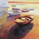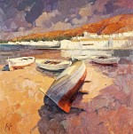 Barcas en la playa de Port La Selva. Óleo sobre lienzo, 100 x 100 cm. Lluis Sanz Torradeflot.